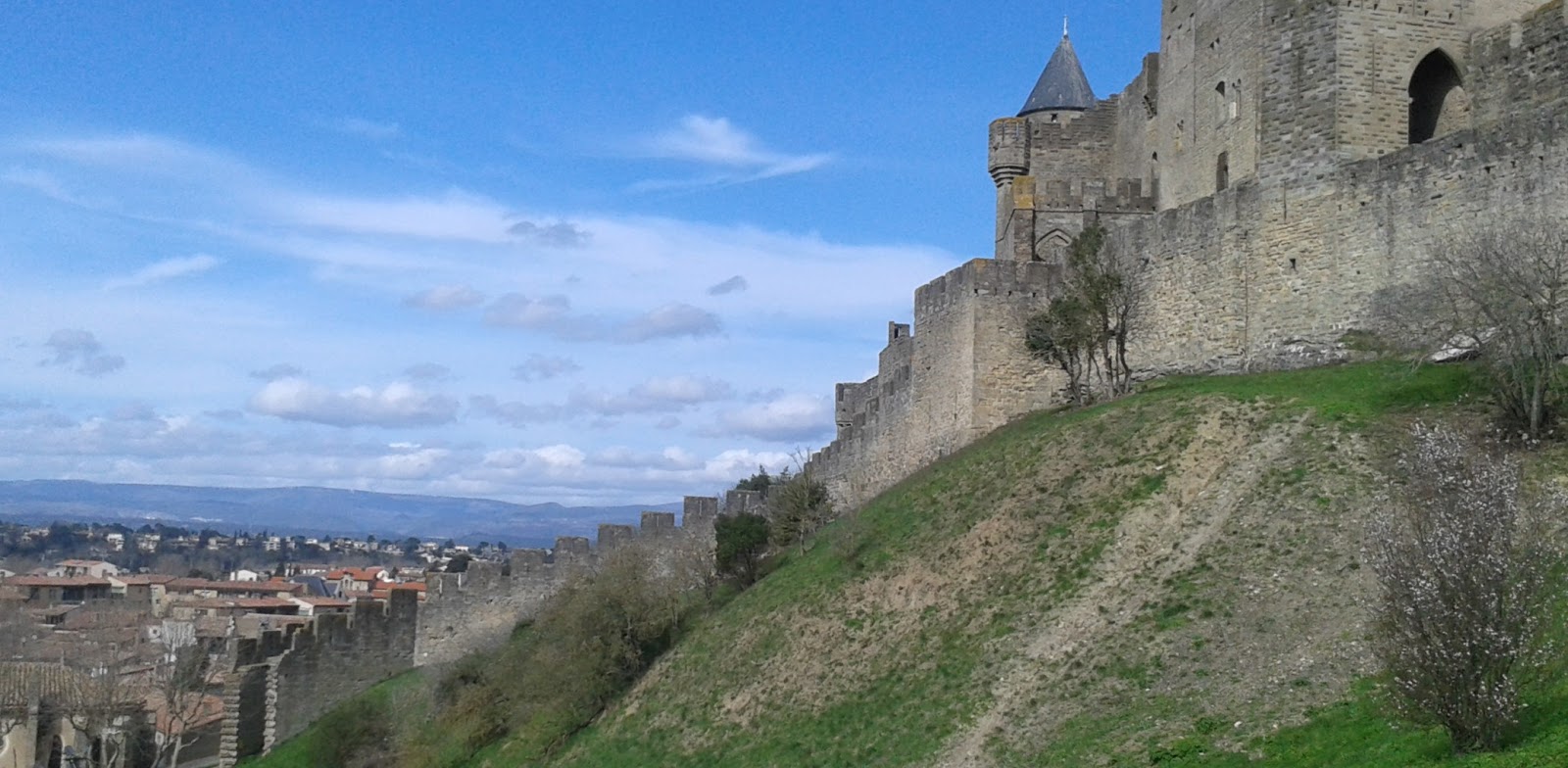 Montpellierista pääsi junalla suoraan Carcassonnen kaupunkiin. Matka kesti 2½ tuntia ja maksoi noin 20 e. Carcassonnen asemalta kävelimme kaupungin läpi noin 2 km matkan linnoituskaupunkiin, Cité de Carcassonneen, jonka muurit nousivat mahtavina kaupungin laidalla olevalla kukkulalla.